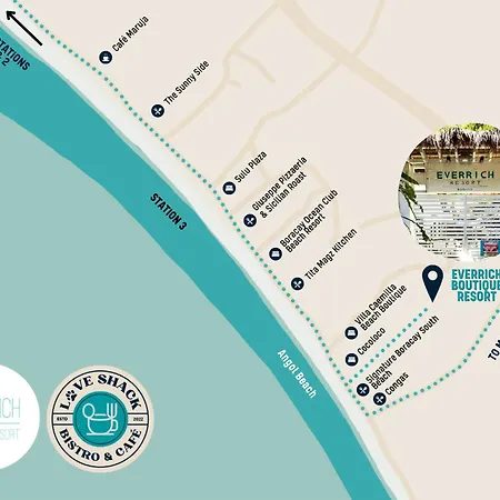 Everrich Boutique Resort Boracay'de lokale yemeklerini servis eden Amerikaans restaurant bulunmaktadır. Bar Shantal's Resto Bar, 200 metre mesafededir.